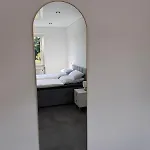 Das Design Apartment Zweibrücken verfügt über eine getrennte Toilette und eine Dusche für Ihren Komfort. Das Badezimmer ist mit einem Haartrockner, einer Duschhaube und Handtüchern ausgestattet.